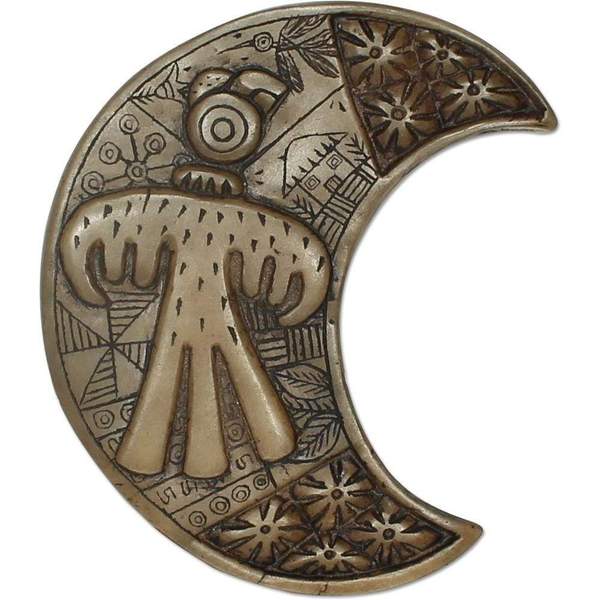 Chocked full of iconographic representations of Andean cosmology, this beautifully hand carved stone crescent shaped tile was created by shamanic artists Abelardo & Luz Marina. Hand made, so your piece may vary slightly from photo in type and placement of designs.