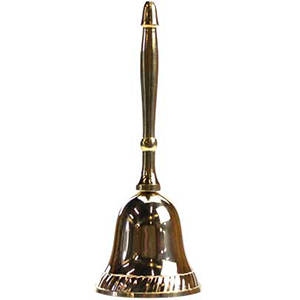 A clear toned brass bell with sleek, gentle curves and just the barest minimum of decoration near the lip. Brass. 3″ x 1 1/2″