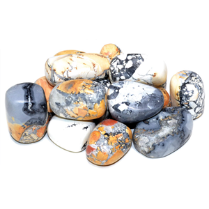 Maligana Jasper, ranging in a variety of colors and tones and each with its own unique dendritic pattern throughout each relaxing piece. Great stone for stabilizing and balancing your aura as well as within. Protects against negativity and brings great grounding. Sold by weight only with a variety of sizes in each pound mostly being medium and smaller stones.